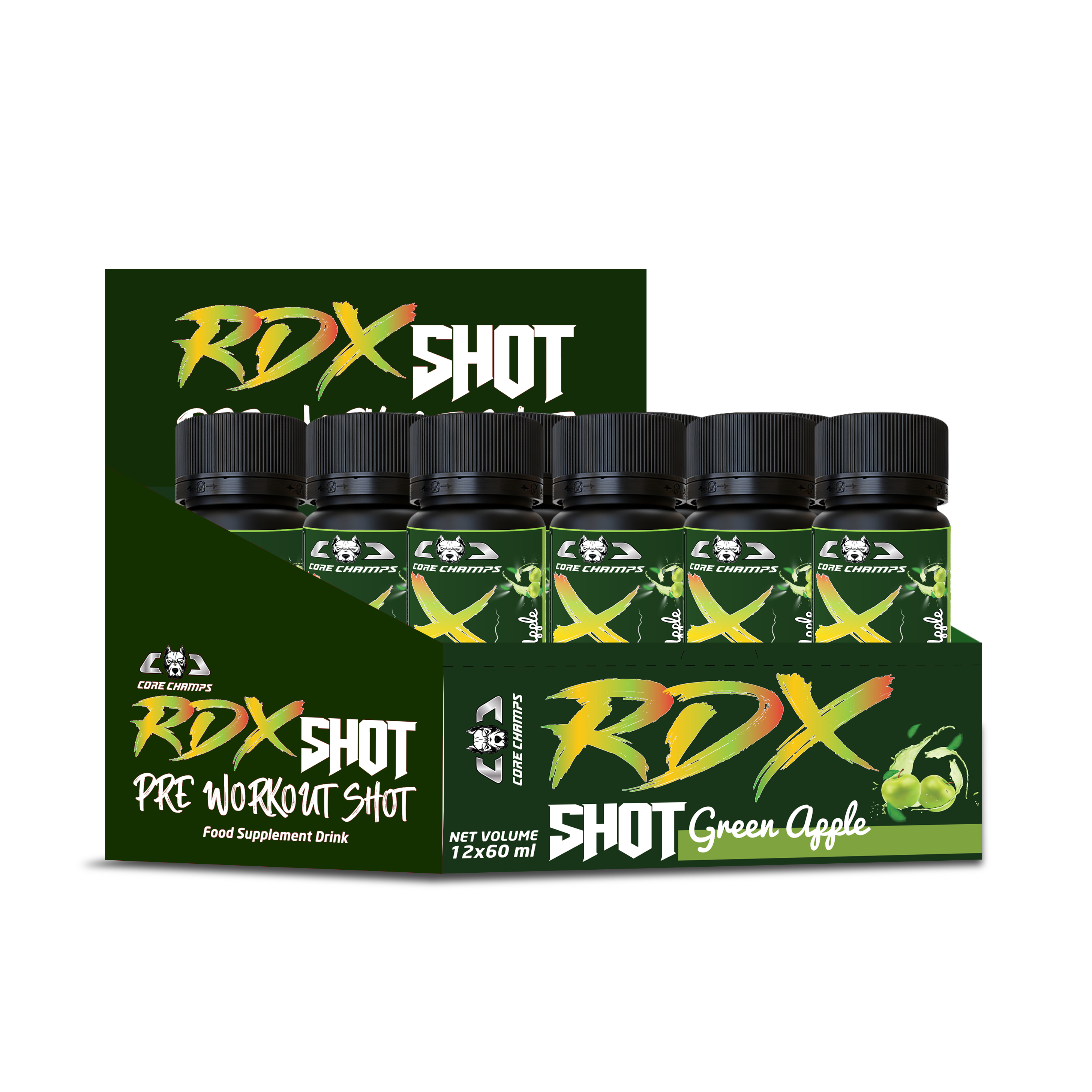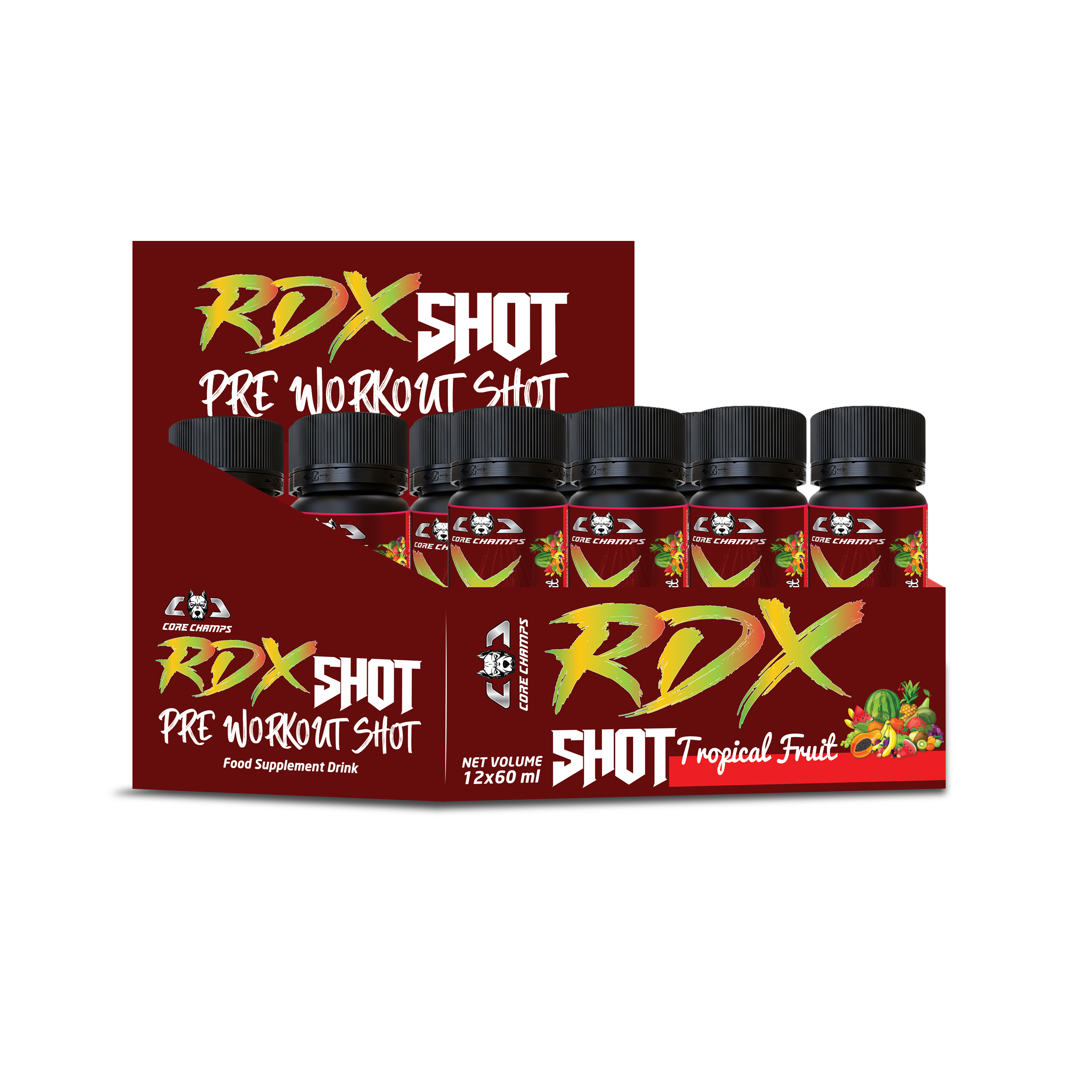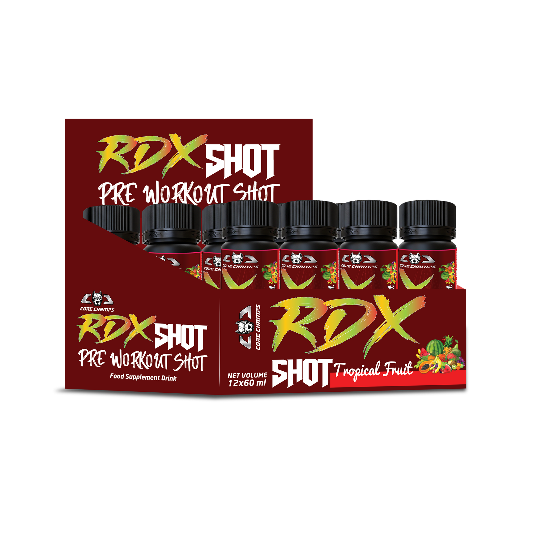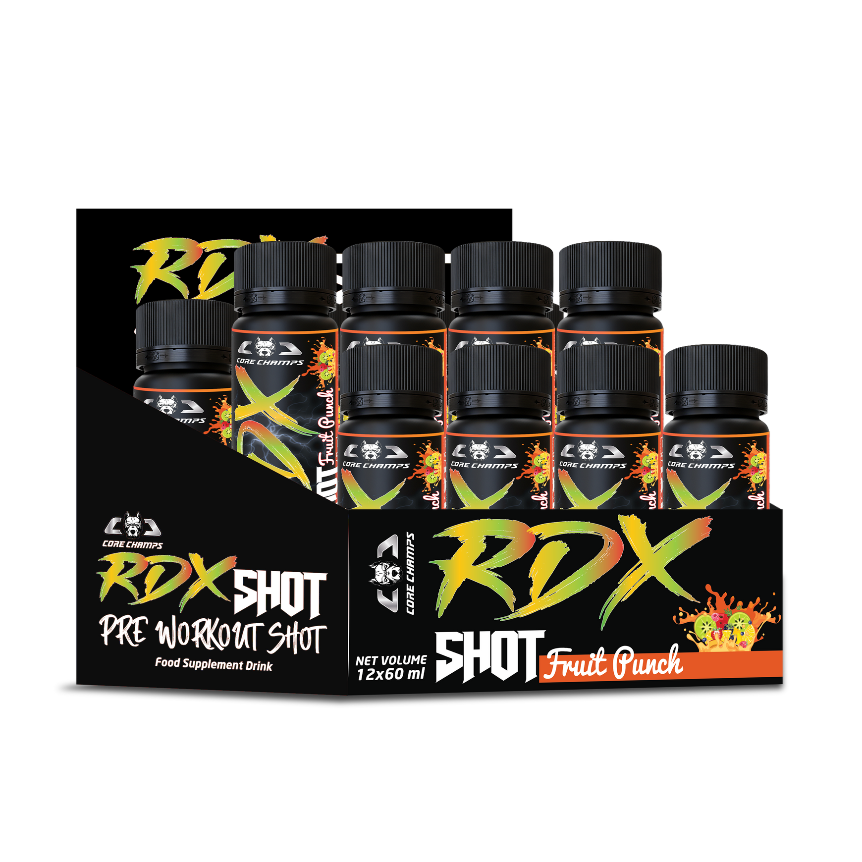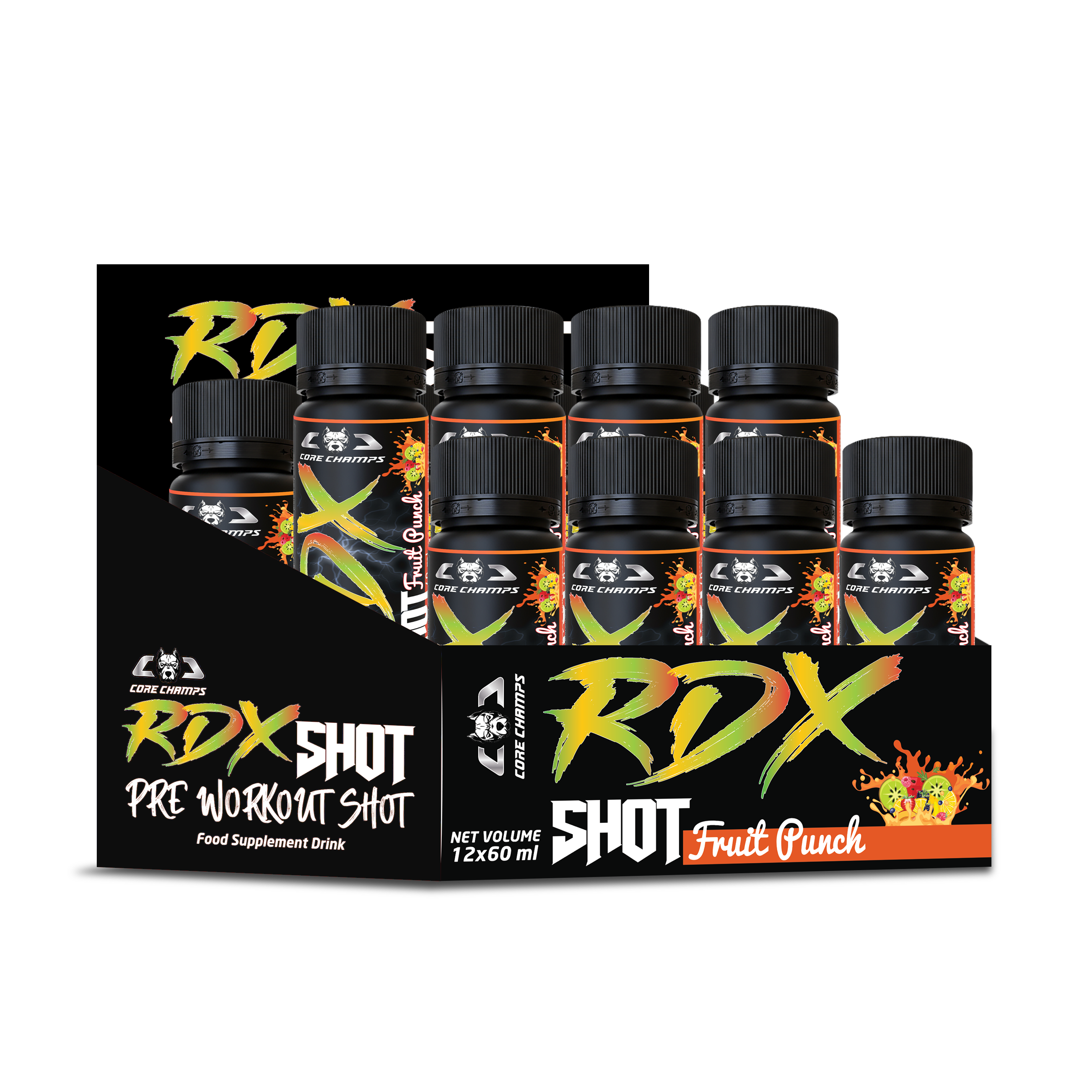Core Champs RDX Shot is the ultimate pre-workout fuel — powerful, portable, and designed to help you dominate every session. With 12 ready-to-drink shots per box, you’re always prepared to perform at your peak.