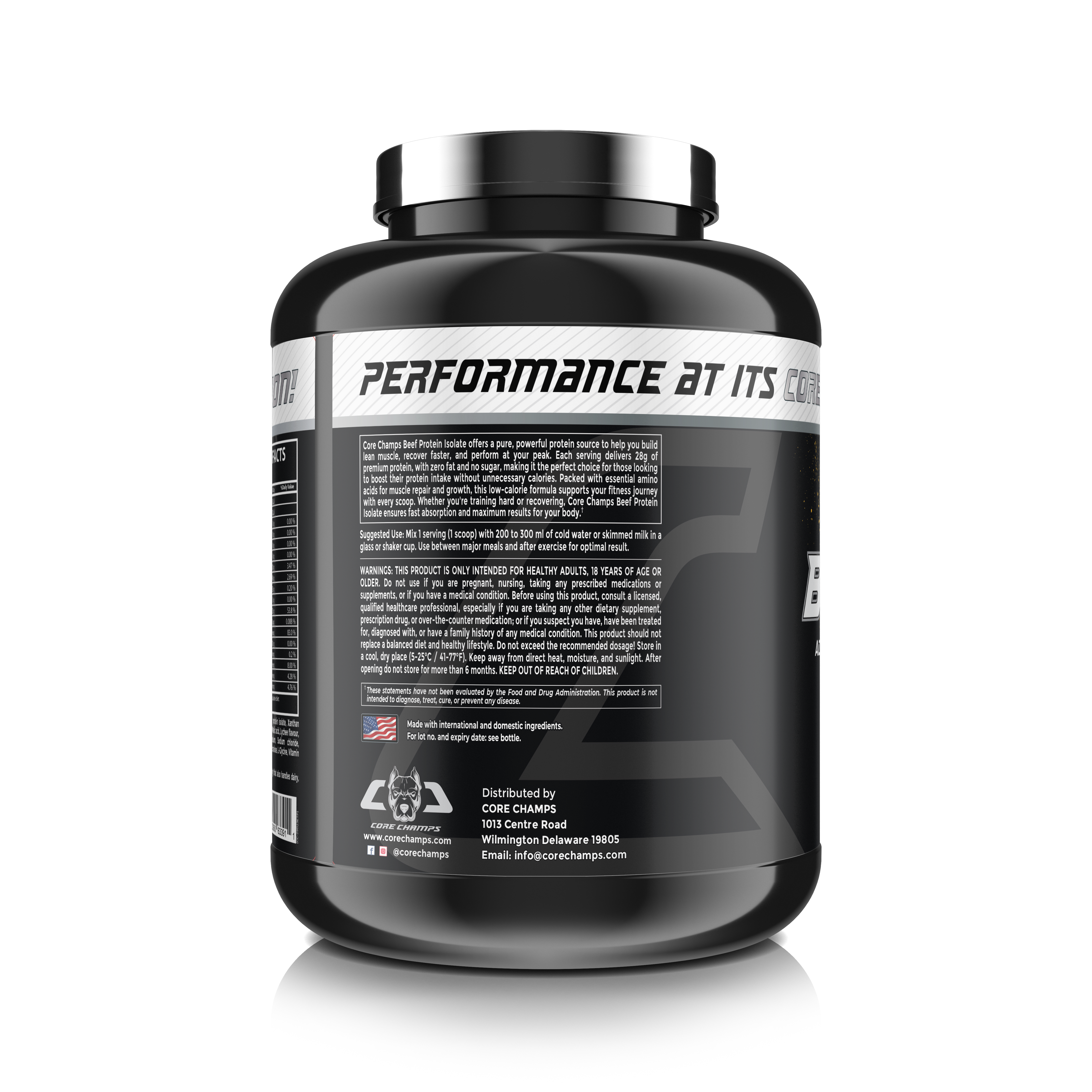 Fuel your training and support lean muscle development with Core Champs Beef Isolate, a high-quality beef protein isolate formula designed for athletes, gym-goers, and anyone looking to increase daily protein intake with a clean, effective supplement.